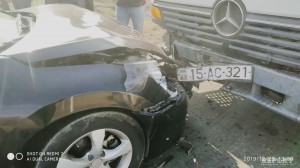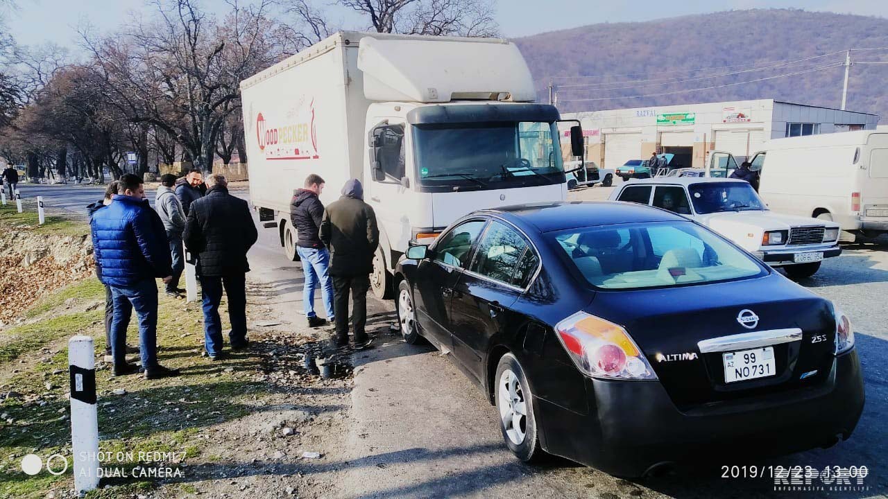 Oğuzda "Mercedes" "Nissan"la toqquşdu: xəsarət alan var - FOTO