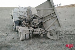 Şamaxıda sement dolu yük maşını 45 metr hündürlükdən dərəyə aşıb - FOTO