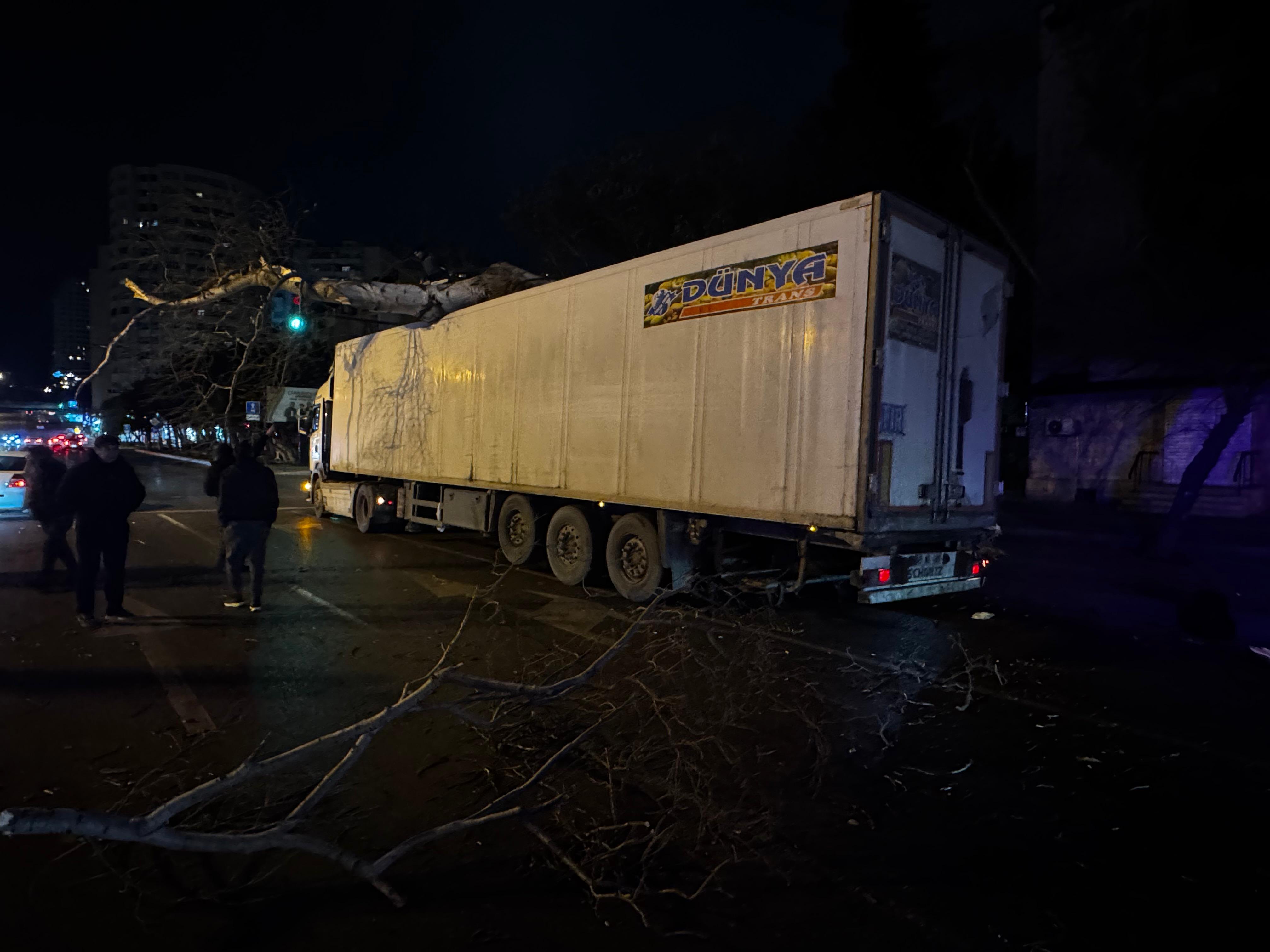 Şəhərin mərkəzində yük maşını ağaca çırpıldı: Yolda sıxlıq yarandı - FOTO