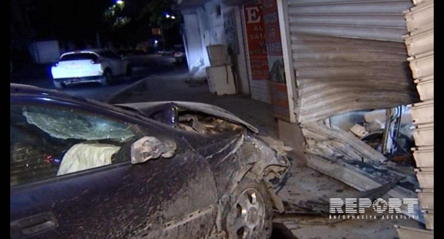 Sərxoş sürücü avtomobilini mağazaya çırpdı: xəsarət alanlar var - FOTO