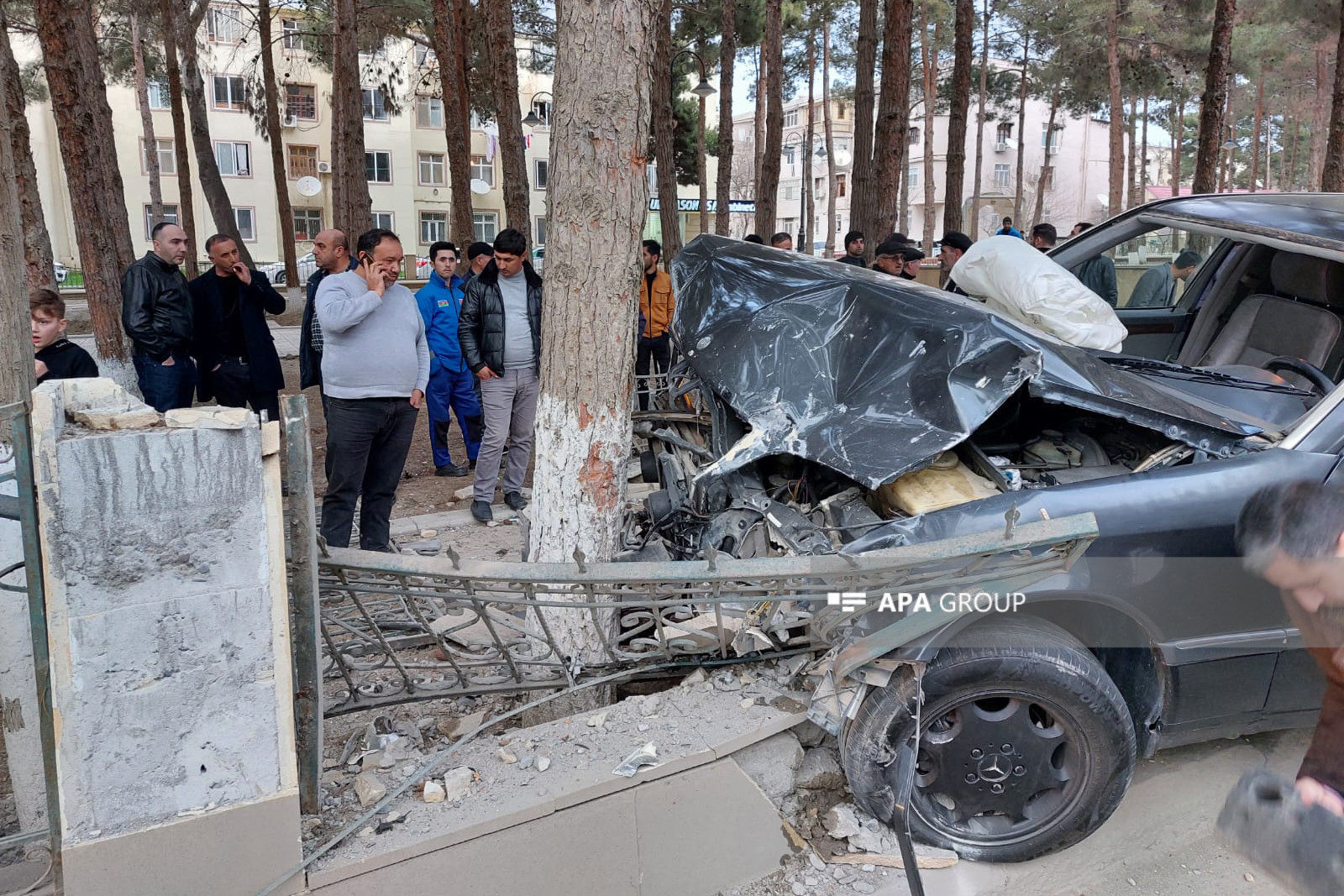 “Mercedes” markalı avtomobil “Mitsubishi” markalı avtomobillə toqquşub, daha sonra parkın hasarına çırpılıb. Hadisə nəticəsində şəhər təsərrüfatına ziyan dəyib.