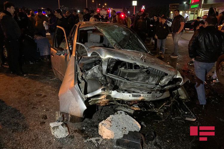Sumqayıt yolunda maşın betona çırpılıb bu hala düşdü, yaralılar var - FOTO