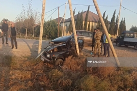 Sumqayıtda avtomobil elektrik dirəyinə çırpılıb, xəsarət alanlar var - FOTO