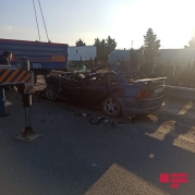 Sumqayıtda minik maşını yük avtomobilnə çırpıldı, ölən var - FOTO
