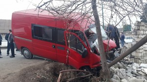 Tovuz rayonunda sərnişin mikroavtobusu qəzaya düşüb. Avtosfer.az-ın "Report"a istinadən məlumatına görə, Ağstafa rayonunun Qırılı kənd sakini, 21 yaşlı Elşən Abbasovun idarə etdiyi "Ford" markalı mikroavtobus şəhərin Heydər Əliyev prospektində hərəkətdə olarkən idarəetmədən çıxaraq yolun kənarındakı daş hasara çırpılıb.