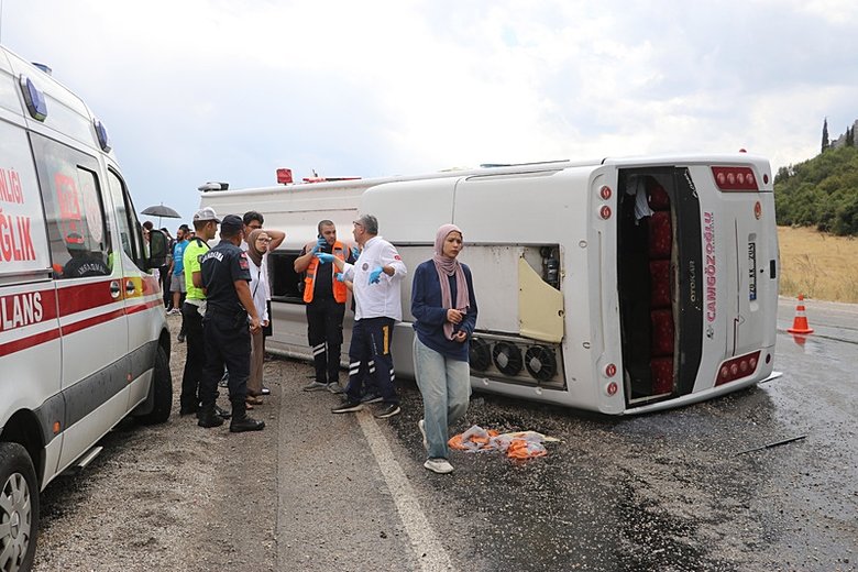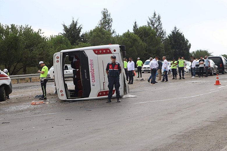 Məlumata görə, İzmirə toya gedənləri aparan sərnişin avtobusu, sürücünün idarəetməni itirməsi səbəbindən aşıb.