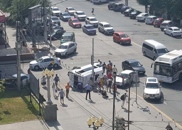 Rusiyanın Volqoqrad şəhərində marşrut mikroavtobusunun və minik avtomobilinin iştirakı ilə yol-nəqliyyat hadisəsi baş verib. Avtosfer.az xəbər verir ki, hadisə avqustun 18-də yerli saatla 11:20-də Lenin prospekti ilə Komsomol küçəsinin kəsişməsində qeydə alınıb.