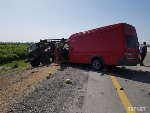 Ucarda iki yük avtomobili toqquşdu: ölən var - FOTO