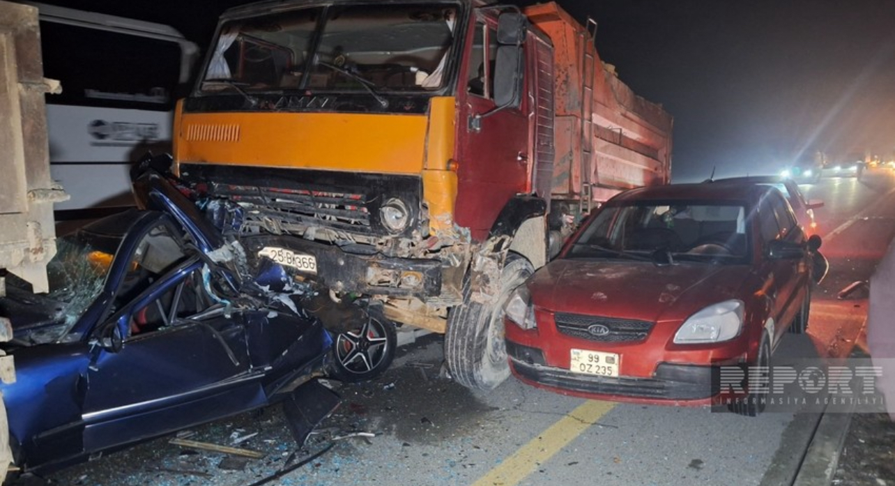 İlkin məlumata görə, 13 avtomobilin toqquşması nəticəsində 2 nəfər ölüb, 10-dan yuxarı şəxs xəsarət alıb.