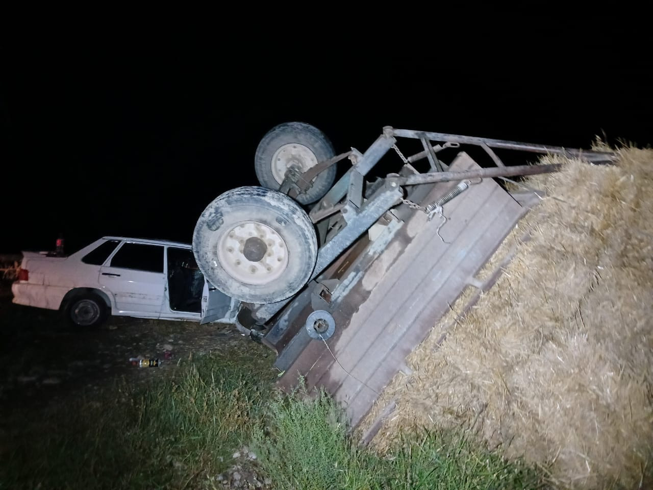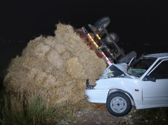 Hərəkətdə olan VAZ-21015 markalı minik maşını qoşqulu traktorla toqquşub. Qəzadan sonra VAZ yoldan çıxaraq aşıb.