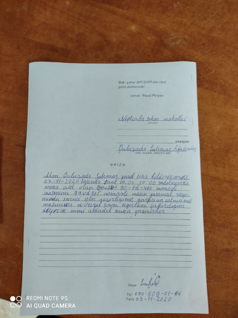 Bakıda 99-VD-861 qeydiyyat nişanlı “Kia Rio” markalı avtomobilin sürücüsünün svetoforun qırmızı işığından keçib xanım sürücüyə təhlükə yaratması, daha sonra xanım sürücünün etiraz olaraq siqnal verməsinə görə xanımın avtomobilinin qarşısını kəsib ona nalayiq ifadələr işlətməsi barədə xəbər vermişdik. Bundan sonra Şahmar adlı oxucu bizimlə əlaqə saxlayaraq bildirdi ki, 99-VD-861 qeydiyyat nişanlı avtomobilin sürücüsü noyabrın 7-də onun avtomobilini vuraraq hadisə yerindən qaçıb. Şahmar adlı oxucu hadisə zamanı avtomobilinə dəyən ziyanı əks etdirən videogörüntünü də bizə göndərib. O qeyd edir ki, hadisədən sonra həmin sürücü ona "avtomobili kənara çəkib sığortanı çağıraq"- deyib. Lakin sonradan hadisə yerindən qaçıb. Şahmar bununla bağlı DİN-in 102 qaynar xəttinə və yazılı formada şikayət ərizəsi ünvanlayıb.