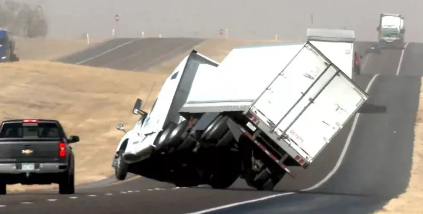 Avtosfer.az xəbər verir ki, ağır yüklə hərəkət edən yarımqoşqulu avtomobil yandan əsən küləyin təsirinə məruz qalıb. Şiddətli külək əvvəl yarımqoşqunu, ardınca isə yedəkçi avtomobili çevirib. Hadisə yolda hərəkət edən digər avtomobillərin kamerasına düşüb.