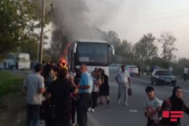 Bakıdan Mingəçevirə gələn sərnişin avtobusu Yevlax rayonu ərazisində alovlanıb.