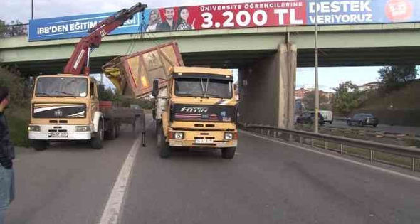 İstanbul şəhərinin Ümraniye rayonunda yük maşınının kuzası açılaraq körpüyə çırpılıb.