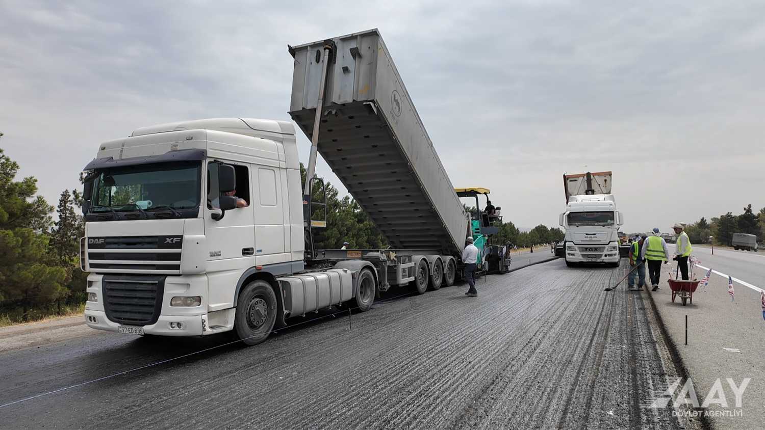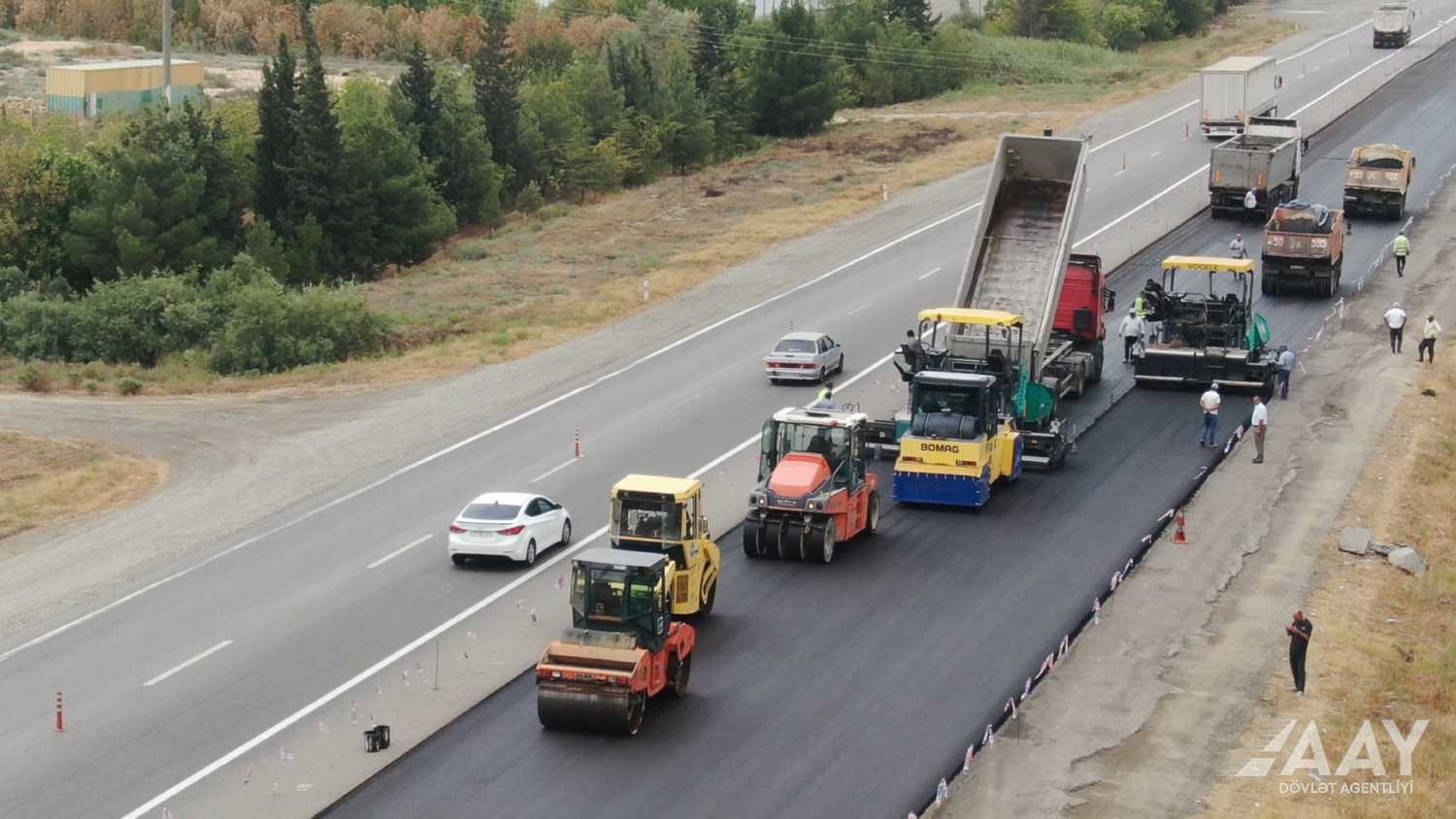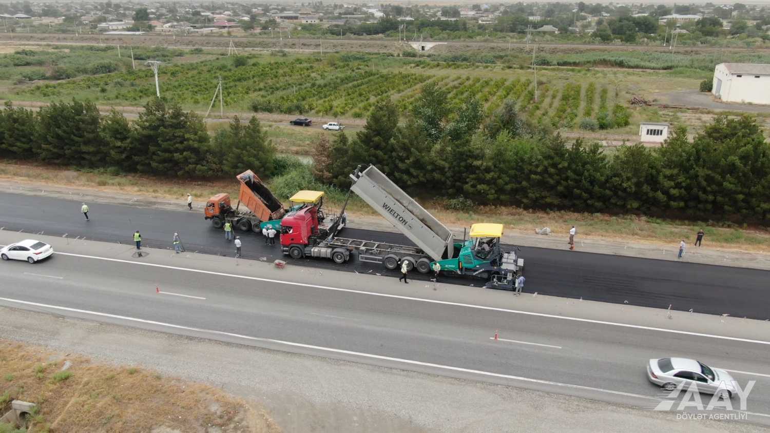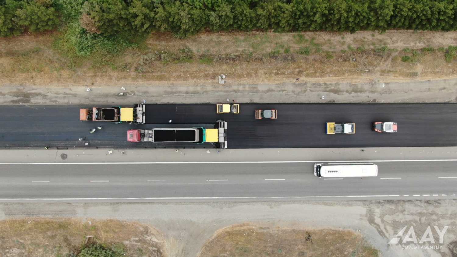 Texnoloji ardıcıllığa uyğun olaraq, hazırda yola yeni asfalt-beton örtüyünün hamarlayıcı qatının tikintisi işləri görülür. Layihənin sonuncu mərhələsində asfalt-beton örtüyünün aşınma qatının döşənməsi və hərəkətin normal təşkili üçün üfüqi nişanlanma xətlərinin çəkilməsi işləri aparılacaq.
