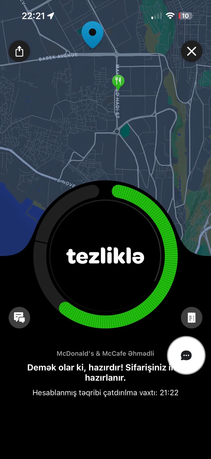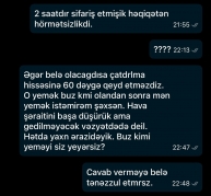 Ən narahatedici məqam isə sifarişin ləğv olunma formasıdır. Müştəriyə son 15 dəqiqə ərzində tətbiq üzərindən “kuryer sifarişi sizə çatdırmaq üzrədir” bildirişi göndərildiyi halda, cəmi 2 dəqiqə sonra sifariş heç bir izah verilmədən ləğv edilib.