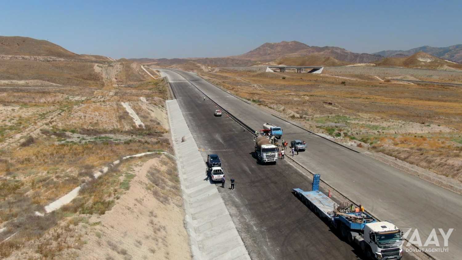 Yolun inşasında yüksəkkeyfiyyətli materiallardan və qabaqcıl texnologiyalardan istifadə olunur. Torpaq yatağının hazırlanması, layların sərilməsi və yol geyimi işləri əsasən tamamlanıb.