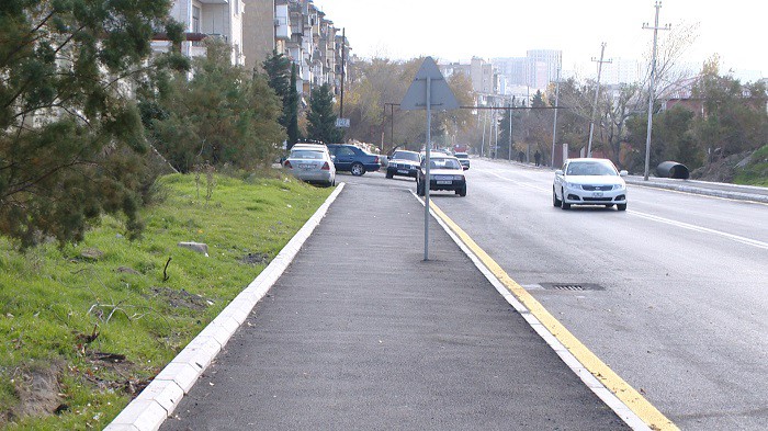 Daha sonra küçəyə, həmçinin yeni qurulmuş və bərpa olunmuş piyada səkilərinə yeni asfalt-beton örtüyünün döşənməsi işləri aparılıb. Ümumilikdə 18 min m2 sahə asfaltlanıb. Təmir işləri zamanı yeraltı kommunikasiya xətlərinin dəmir-beton plitələri qaldırılaraq baxış qapaqları yenilənib, səth sularının kənarlaşdırılması üçün yağış-kanalizasiya sistemi qurulub, zəruri olan yerlərdə yol nişanları quraşdırılaraq, yolun xətlənməsi işləri görülüb.