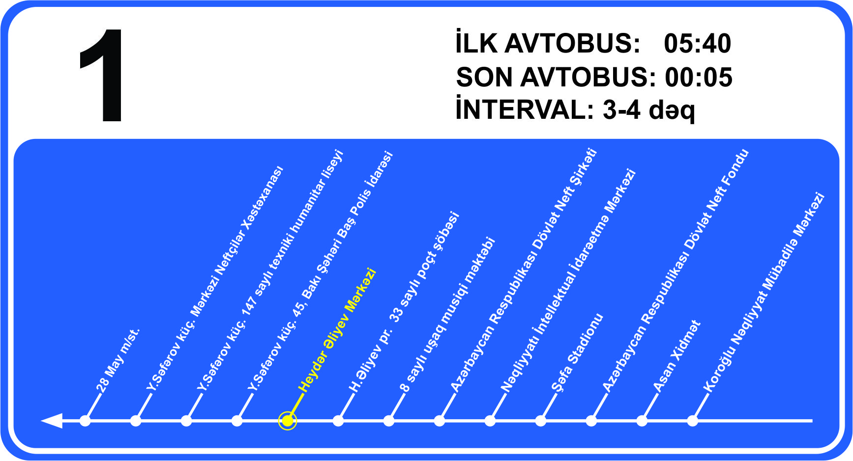 “Yol hərəkəti haqqında” Azərbaycan Respublikası Qanununun tətbiq edilməsi barədə” Azərbaycan Prezidentinin fərmanına dəyişikliklər edilməsi haqqında Prezidentin 23 iyun 2016-cı il tarixli fərmanı ilə yollarda yol nişanlarının qurulması və onların lazımi vəziyyətdə saxlanılmasına nəzarət müvafiq dövlət qurumları, o cümlədən Bakı Nəqliyyat Agentliyi tərəfindən həyata keçirilir. Bu baxımdan, Bakı Nəqliyyat Agentliyi ictimai nəqliyyatda xidmət səviyyəsinin artırılması, əhalinin şəhərdaxili avtobuslardan istifadəsinin daha da yaxşılaşdırılması, eləcə də əlavə vaxt itkisinin qarşısının alınması istiqamətində tədbirlərini davam etdirir. Agentliyin İctimai əlaqələr və maarifləndirmə şöbəsinin müdiri Nuridə Allahyarova Avtosfer.az-a bildirib ki, bu çərçivədə tətbiq edilən yeniliyə əsasən, hər bir dayanacaqda xüsusi məlumat lövhələri quraşdırılacaq. Lövhələrdə dayanacağın yerləşdiyi küçə və prospektdən keçən marşrut xətləri, avtobuslararası interval, həmçinin hər bir marşrut xətti üzrə mövcud dayanacaqlar barədə məlumat əldə etmək mümkündür.