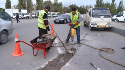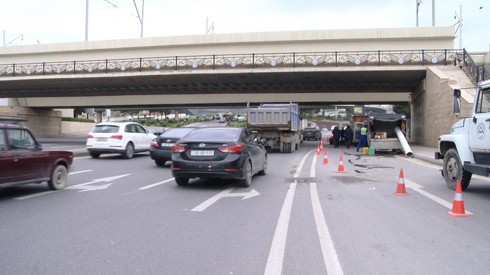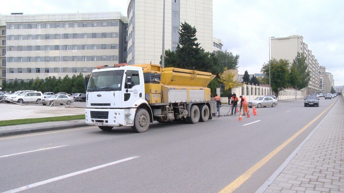 Yağan yağıntılar və intensiv hərəkət nəticəsində küçə və prospektlərin hərəkət hissəsində asfalt-beton örtüyünün deformasiyaya uğramış və dağılmış hissələrinin təmir-bərpa işlərinə də start verilib.