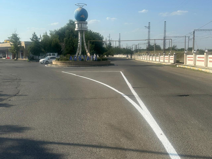Ağstafa şəhərində yol nişanlanma işləri aparılır - FOTO