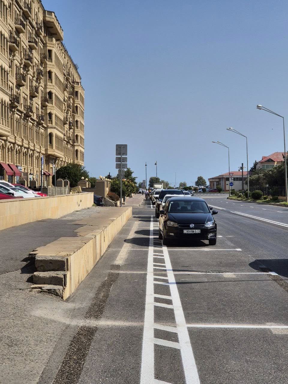 Avtosfer.az xəbər verir ki, bu dəfə də Xaqani küçəsində tətbiq olunan praktika davam etdirilərək “Amay” Ticarət Mərkəzinin qarşısındakı parkinq yerləri saxlanılıb. Velozolaq həmin parkinq zolağından sonra salınıb.