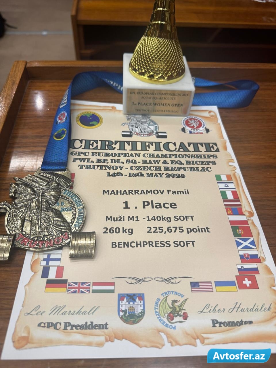 Avtosfer.az xəbər verir ki, 34 ölkədən gələn idmançıların iştirak etdiyi yarışda Azərbaycanın yığma komandası güc idman növü ilə məşğul olan idmançılarla təmsil olunub. Onların arasında DİN Baş Dövlət Yol Polisi İdarəsinin YPX Alayı qərargahının baş inspektoru polis kapitanı Məhərrəmov Famil Ataş oğlu qəqiblərinə qalib gələrək birinci yerə layiq görülüb. O, 260 kq çəkini qaldırmaqla qələbəyə imza atıb.