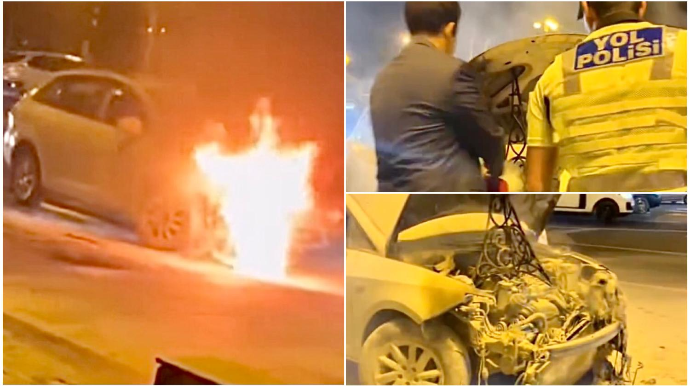 Avtosfer.az-ın məlumatına görə, hadisə iyunun 15-də gecə saatlarında qeydə alınıb. Belə ki, “KIA” markalı maşının ön hissəsi qəfil alovlanmağa başlayıb. Bu vaxt Xoşbəxtlikdən hadisə zamanı maşında insan olmayıb. Bu vaxt ərazidə olan vətəndaş və DYP əməkdaşları yardım ediblər. Kadrdan da göründüyü kimi, yol polisləri odsöndürən balonunun köməyi ilə yanğını söndürərək alovun maşının digər hissələrinə keçməsinin qarşısını alıblar. Əraziyə Fövqəladə Hallar Nazirliyinin Dövlət Yanğından Mühafizə Hissəsinin əməkdaşları cəlb olunub.