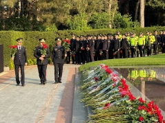Bu gün Ulu Öndər Heydər Əliyevin anadan olmasının 100-cü ildönümü münasibəti ilə DİN-in Baş Dövlət Yol Polisi İdarəsinin şəxsi heyəti Fəxri xiyabana gedərək Ümummilli Liderin abidəsini ziyarət edib, önünə gül dəstələri qoyub, Ulu Öndərin əziz xatirəsini böyük ehtiramla anıblar.