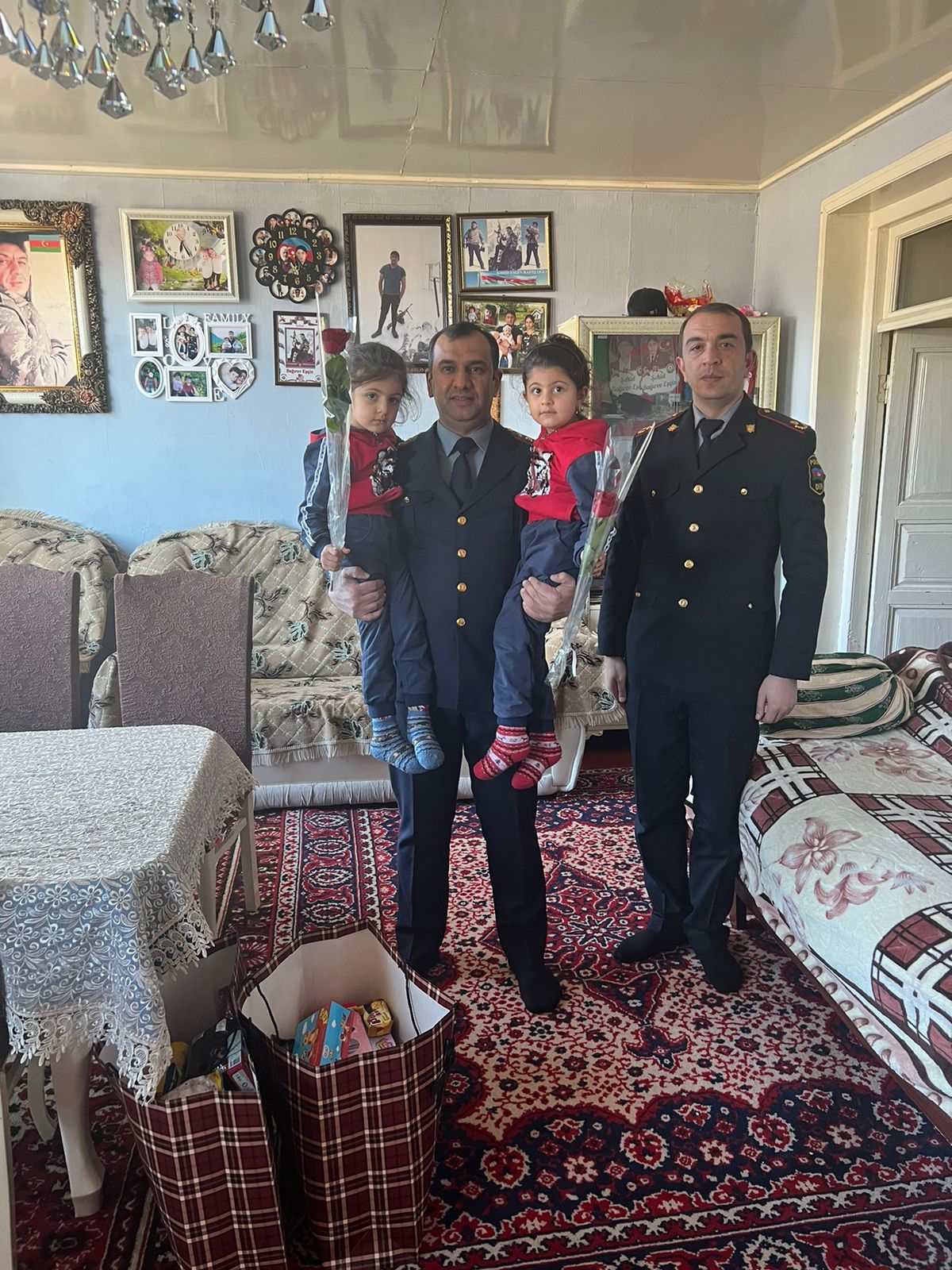 Daşkəsən Rayon Polis Şöbəsinin əməkdaşları Vətən müharibəsində şəhid olan hərbçilərimizin ailələrini ziyarət edib, 8 Mart – Beynəlxalq Qadınlar Günü münasibətilə torpaqlarımızın azadlığı uğrunda canından keçən qəhrəmanlarımızın qadın ailə üzvlərini təbrik ediblər. Gətirdikləri hədiyyələri onlara təqdim ediblər.