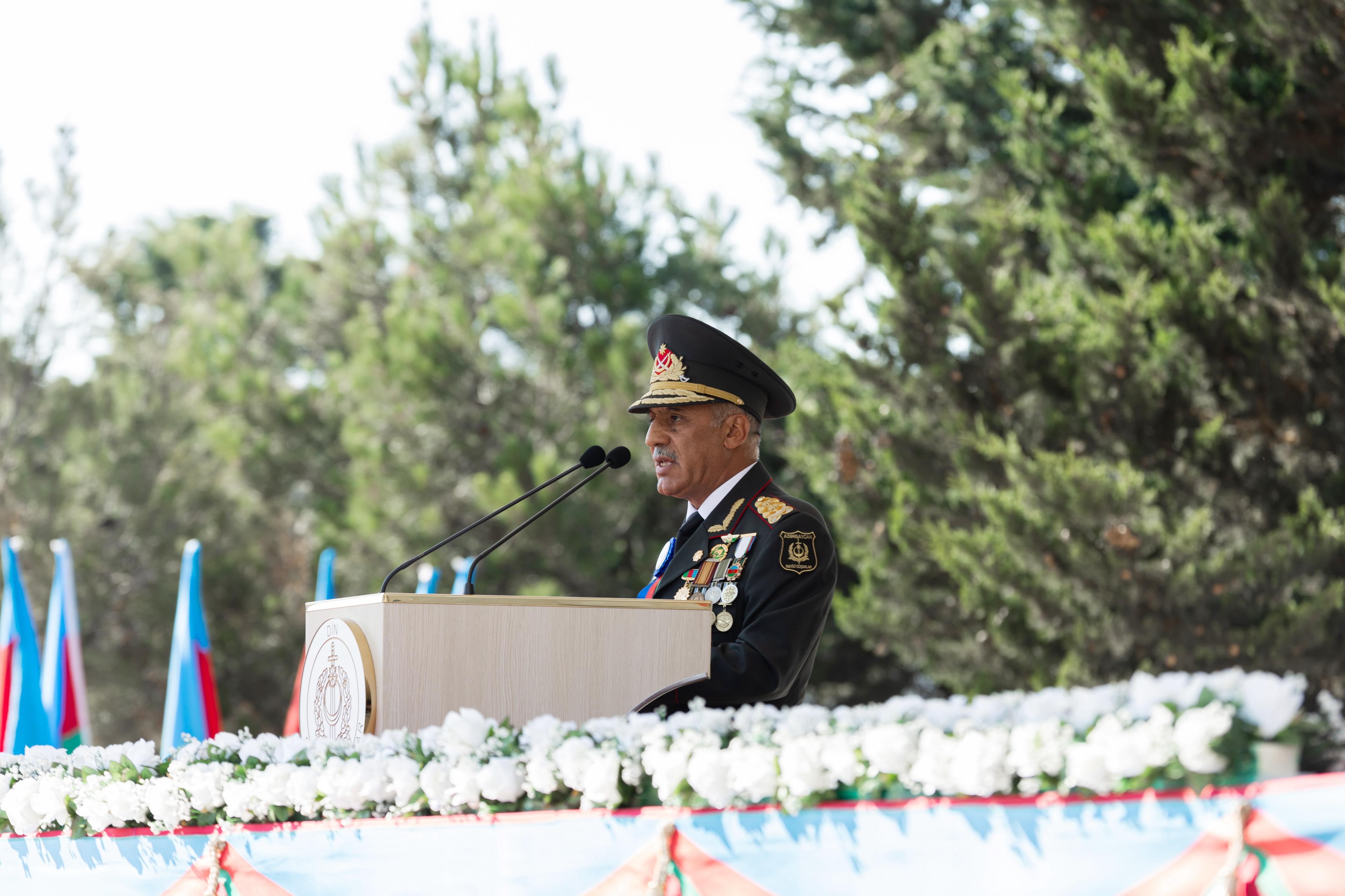 Məzunların buraxılış mərasiminin Hərbi İnstitutun həyatında əlamətdar hadisələrdən biri olduğunu diqqətə çatdıran nazir müavini – Daxili Qoşunların komandanı general-leytenant Şahin Məmmədov təhsil müəssisəsinin inkişaf yolu, maddi-texniki və tədris bazasının gücləndirilməsi istiqamətində görülən işlər və qarşıda duran vəzifələr barədə məruzə edib.