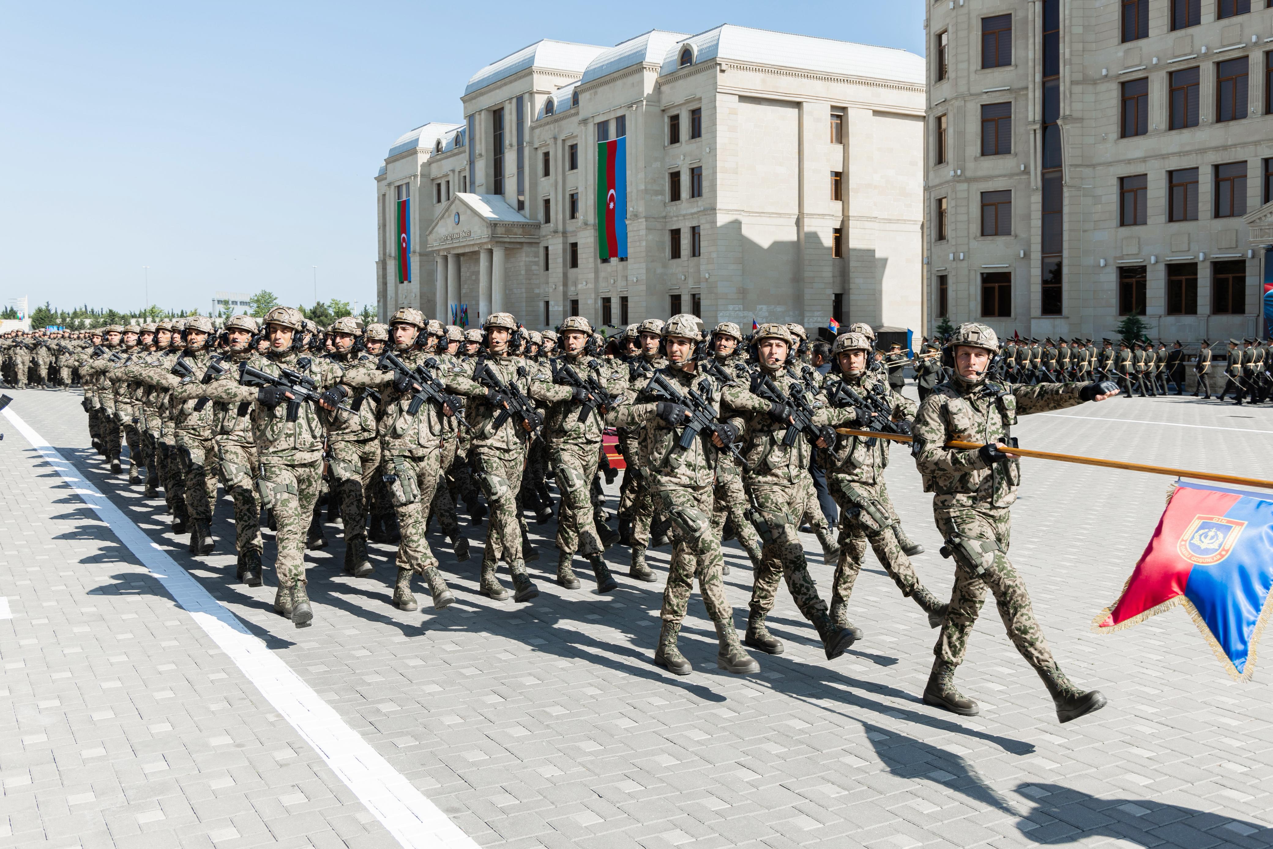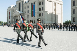 Sonda gənc zabitlər təntənəli marşla tribunanın qarşısından keçiblər.