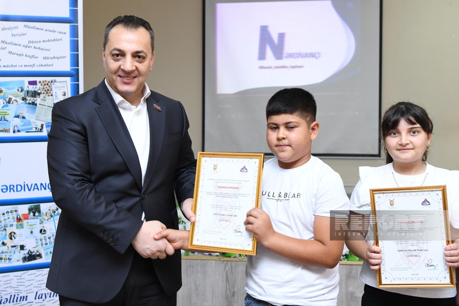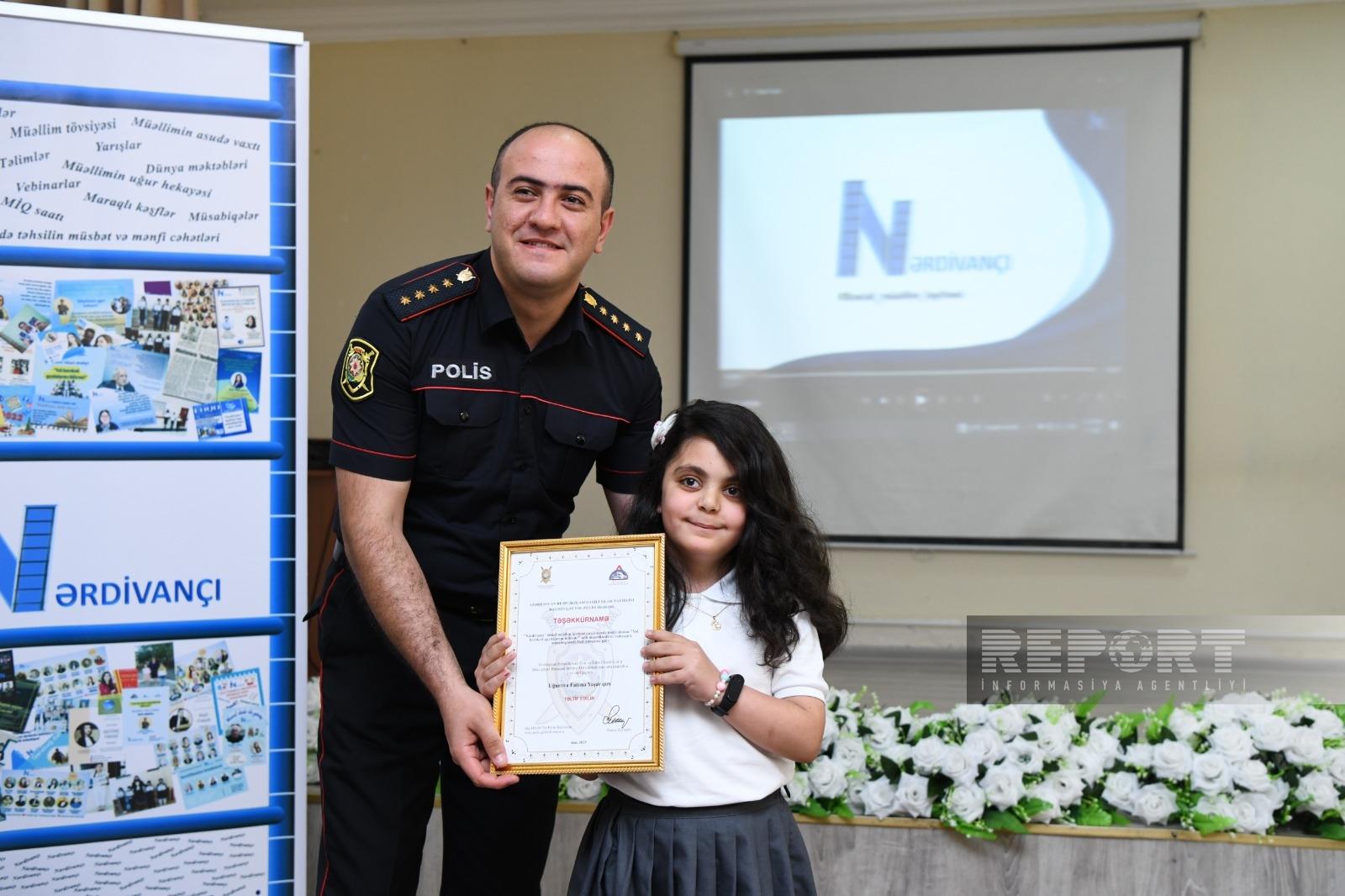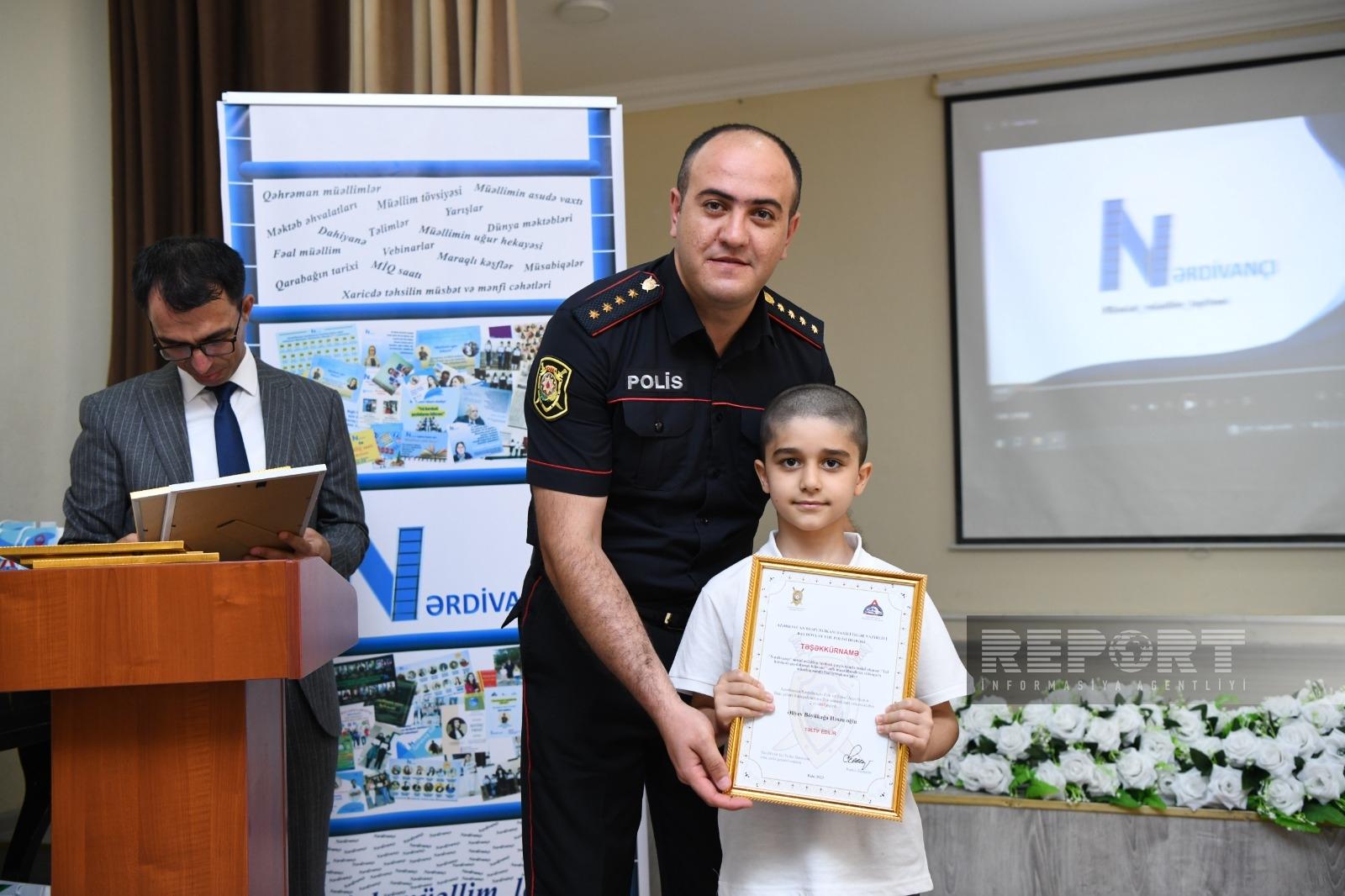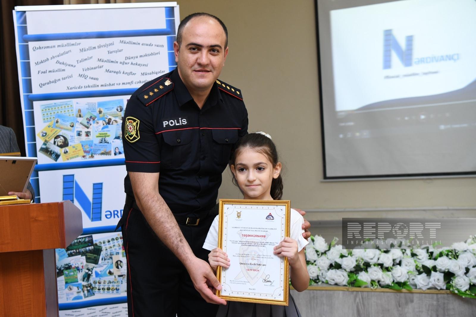 “Nərdivançı” sosial müəllim layihəsinin Daxili İşlər Nazirliyinin (DİN) Baş Dövlət Yol Polisi İdarəsinin dəstəyi və Avtosfer.az saytının informasiya dəstəyi ilə təşkil etdiyi “Yol hərəkəti qaydalarını bilirəm!” adlı maarifləndirici videoçarx müsabiqəsinin təltifetmə mərasimi keçirilib.