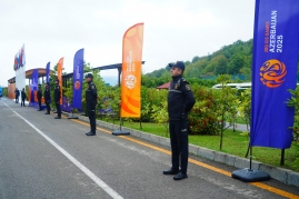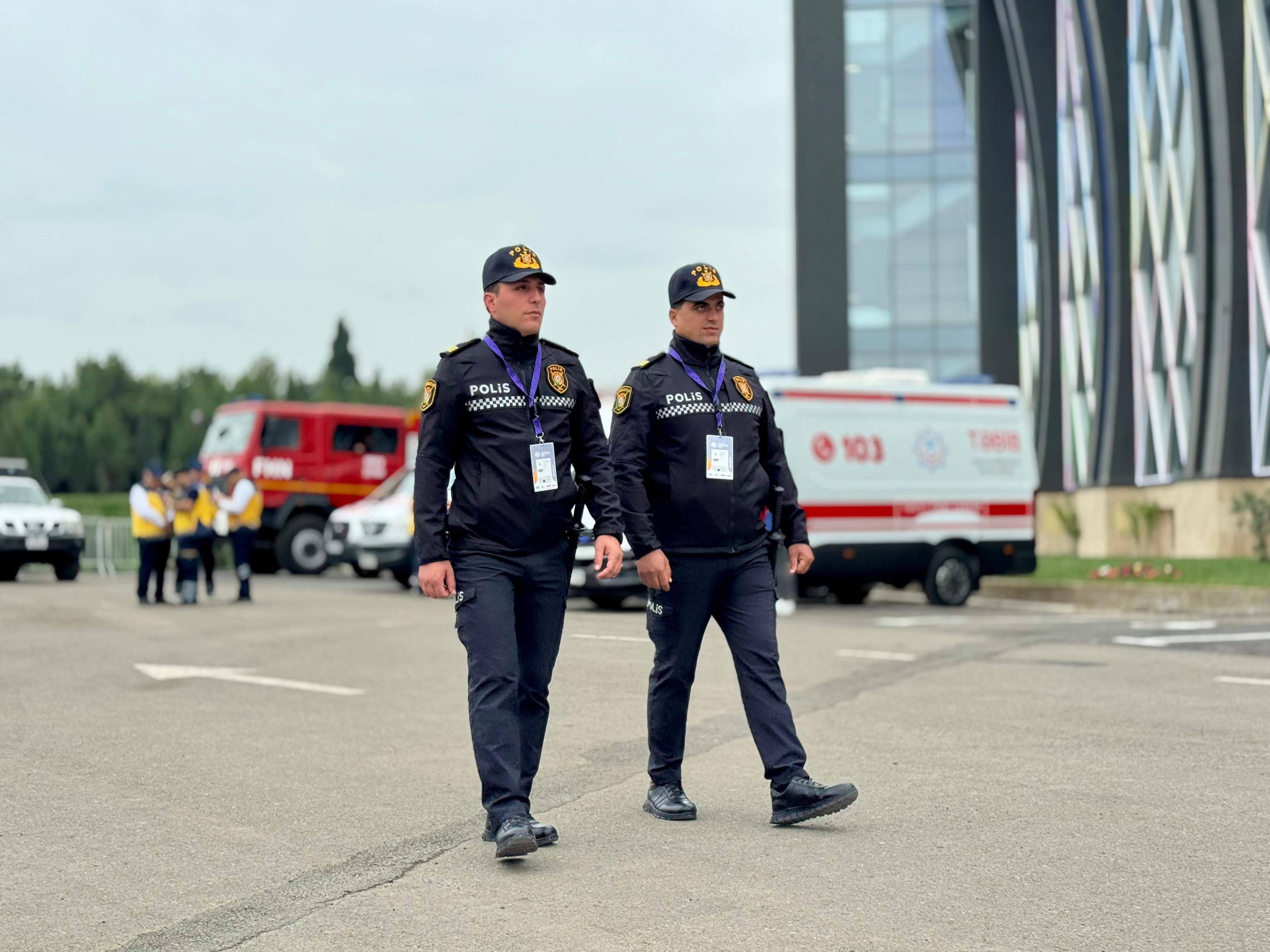Avtosfer.az xəbər verir ki, polis əməkdaşları və Daxili Qoşunların hərbi qulluqçuları yarışların keçirildiyi bütün ərazilərdə ictimai qaydanın qorunması, insanların təhlükəsizliyinin təmin edilməsi, baş verə biləcək hər hansı neqativ və hüquqazidd halların qarşısının vaxtında alınması məqsədilə fasiləsiz rejimdə xidmət aparırlar.