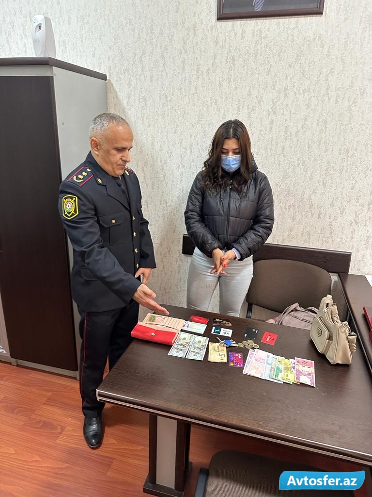 Çantada 530 türk lirəsi, 200 ABŞ dolları, 7 manat, müxtəlif banklara məxsus ödəniş kartları və şəxsiyyət vəsiqəsi olub. Araşdırma zamanı məlum olub ki, çantasını itirən şəxs Hədiyyə Cəfərovadır.