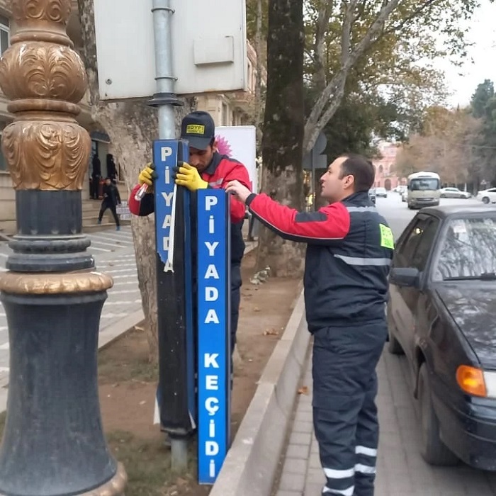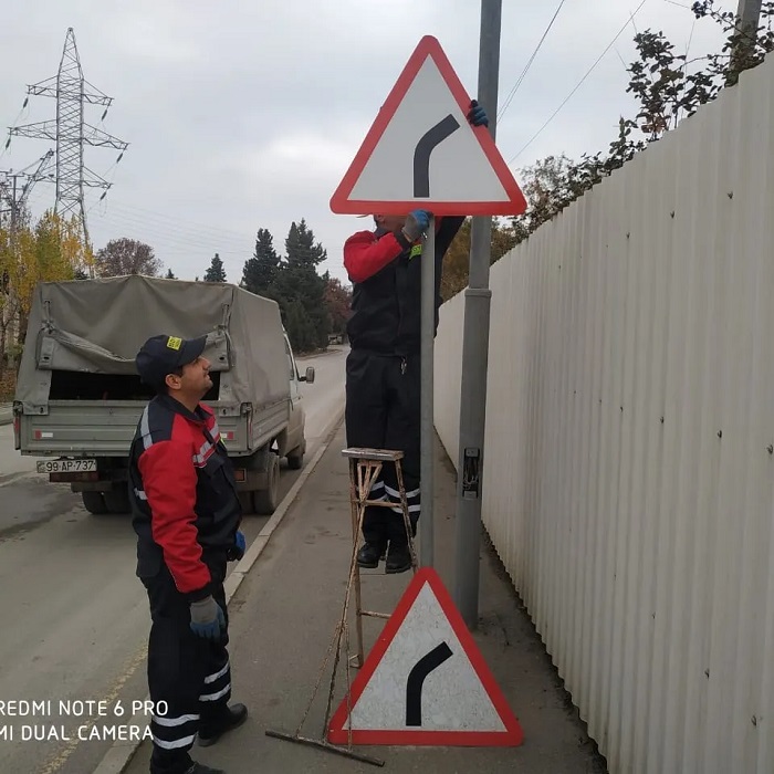 Hazırda meteoroloji şərait nəzərə alınmaqla, respublikanın bir sıra regionlarında, o cümlədən Gəncə, Xaçmaz, Mingəçevir, Ağdam, Sumqayıt, Şəki, Göyçay, Cəlilabad və Kürdəmirdə istismar müddəti keçmiş, mənaları anlaşılmayan yol nişanlarının işıqqaytarıcı elementləri olan yeniləri ilə əvəz edilməsi, silinmiş nişanlanma xətlərinin, yol-cizgi işarələrinin bərpası, eləcə də svetofor obyektlərinə texniki qulluq həyata keçirilir.