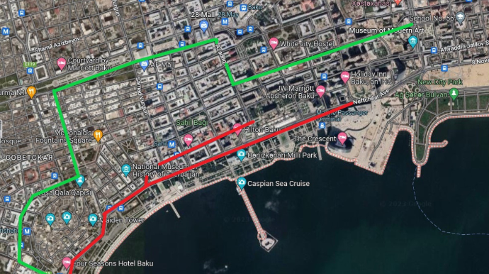 - Orada prospektə sağa, sonra Nizami küçəsi ilə kəsişmədən sola və Nizami küçəsi ilə düz Yusif Səfərov küçəsi ilə kəsişməyə doğru hərəkət etmək lazımdır”.