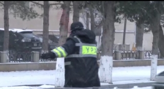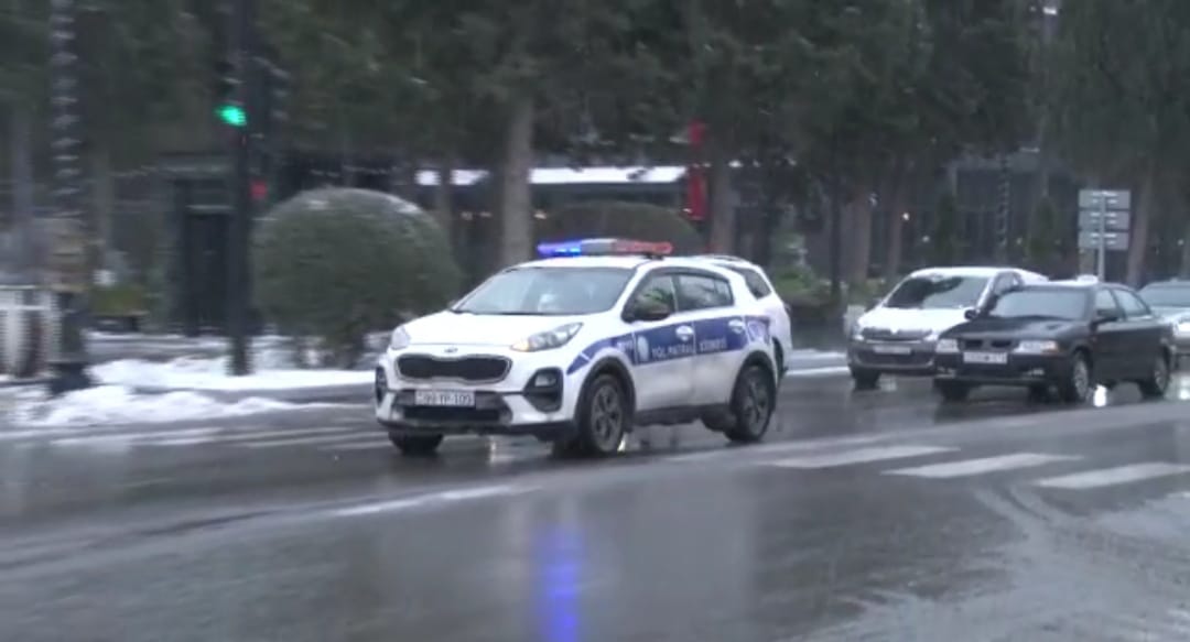 Sumqayıtda yol polisi qarlı havada belə çalışır - FOTO - VİDEO