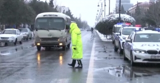 Sumqayıt şəhər Polis idarəsi Dövlət Yol Polisi Şöbəsinin əməkdaşları mövcud şəraitdə yolda qalan nəqliyyat vasitələrinin sürücülərinə kömək edir, yolu keçə bilməyən piyadaların hərəkətini təmin edir. Yarana biləcək qəzaların qarşısını almaq üçün yüksək səviyyədə xidmət aparır.