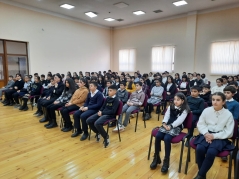 Şuşa Rayon Polis Şöbəsinin təşkilatçılığı ilə Bakı şəhərində yerləşən rayonun 7 saylı tam orta məktəbində narkomaniya və erkən nikahın fəsadlarından bəhs edən maarifləndirmə tədbiri keçirilib.