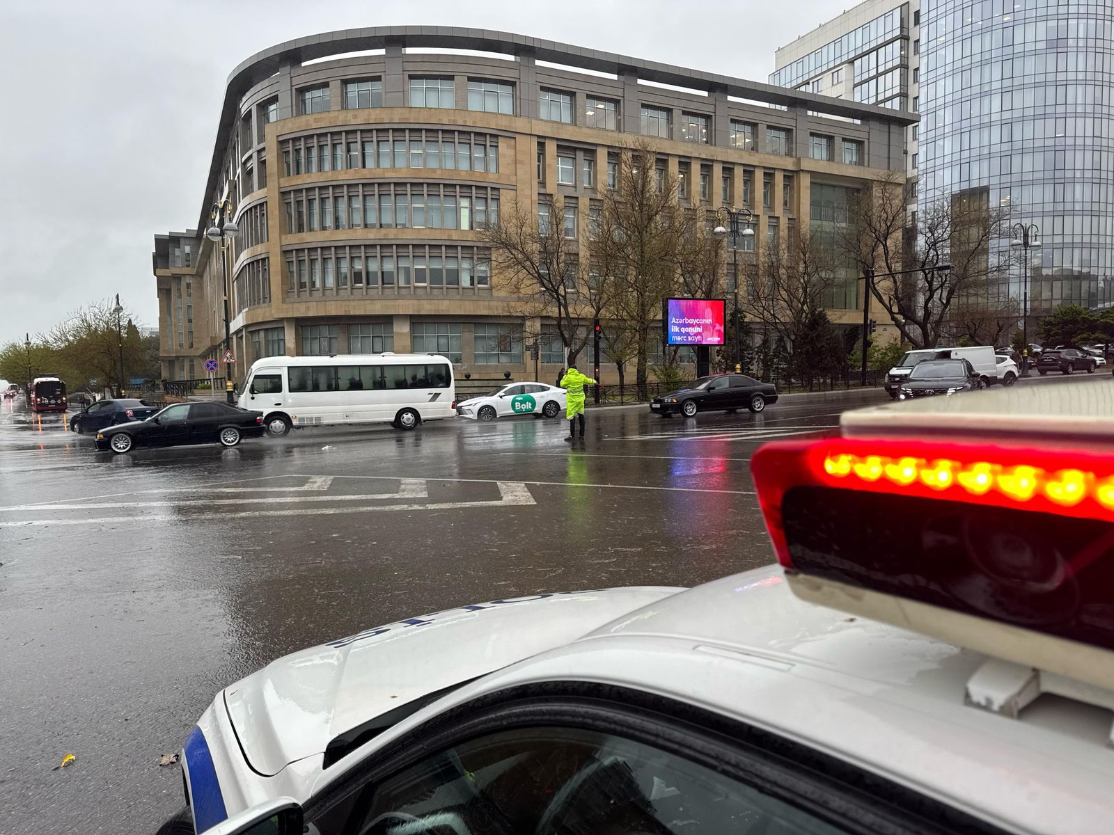 Polis yağışlı havada fasiləsiz xidməti davam etdirir - FOTO - VİDEO