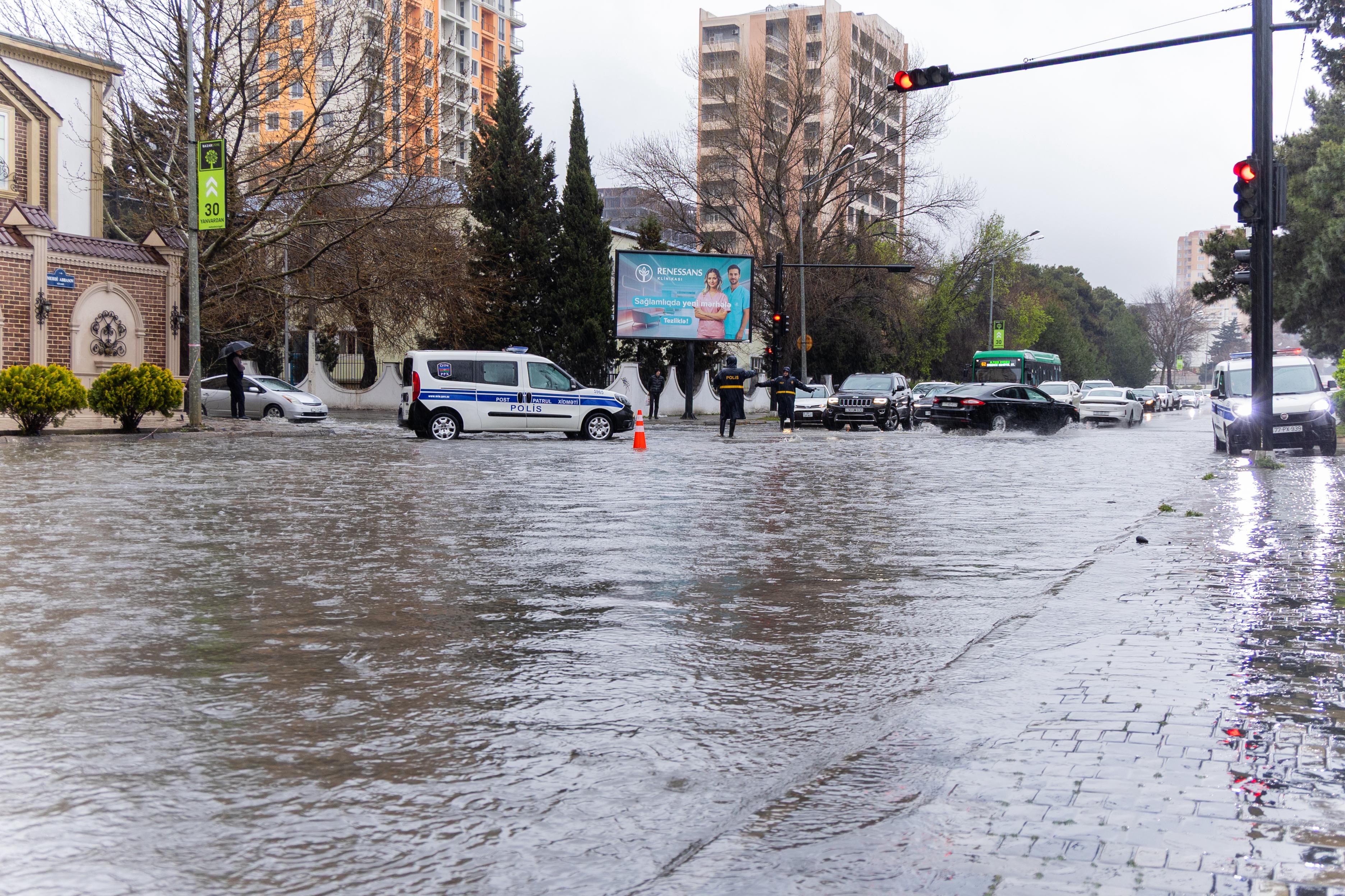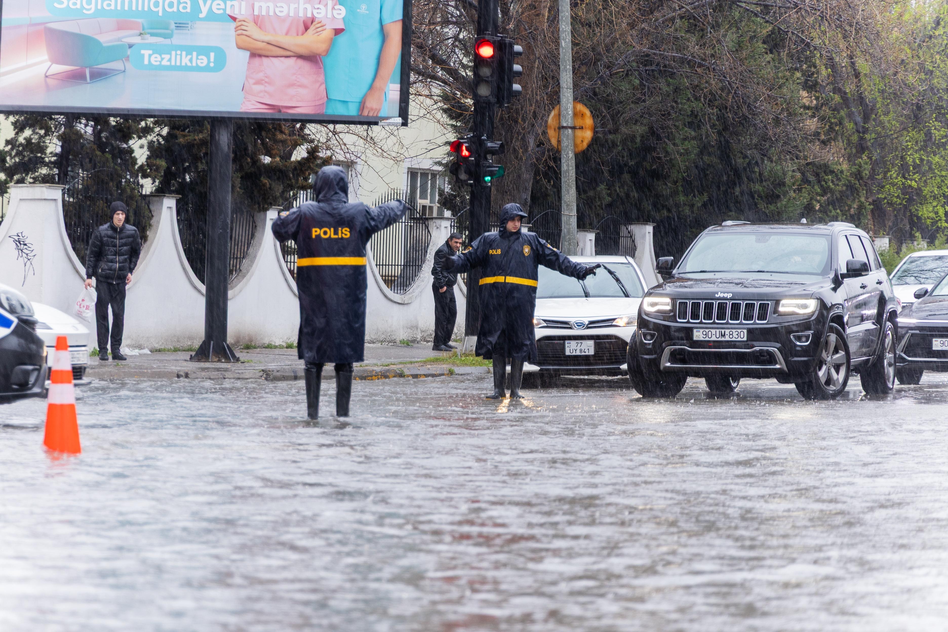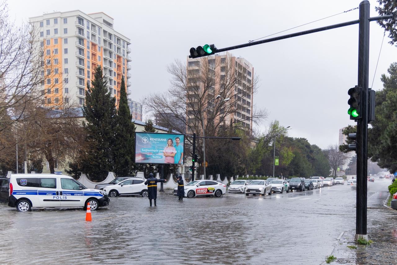 Yağışlı hava şəraiti: polis küçələrdə nəzarəti artırdı - FOTO - VİDEO