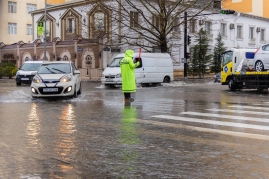 Yol polisləri suyun içində xidmət aparır – VİDEO