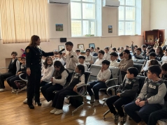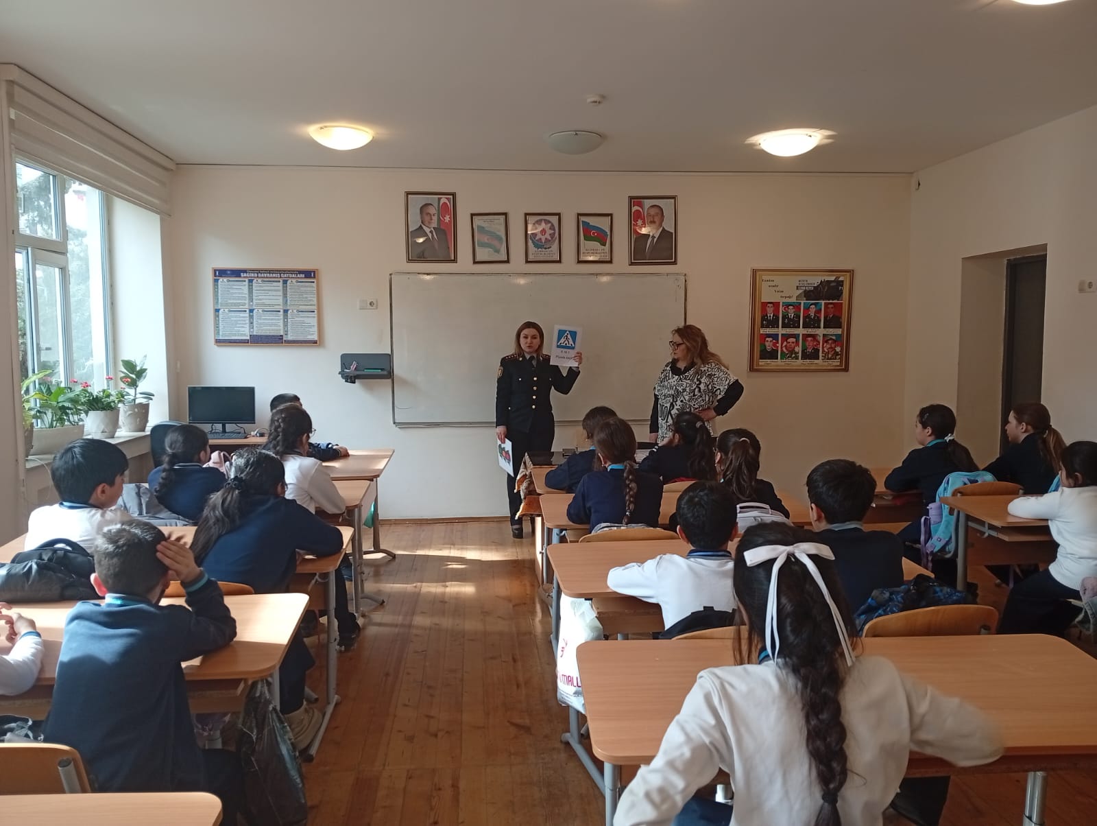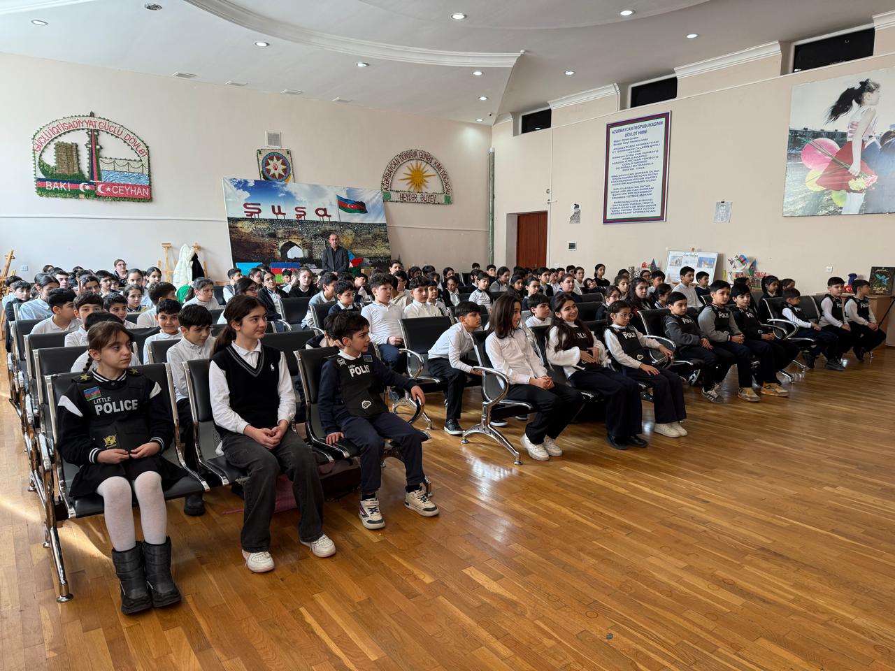 Yol polisi orta məktəblərdə uşaqların suallarını cavablandırdı - FOTOLAR