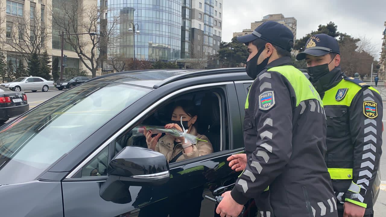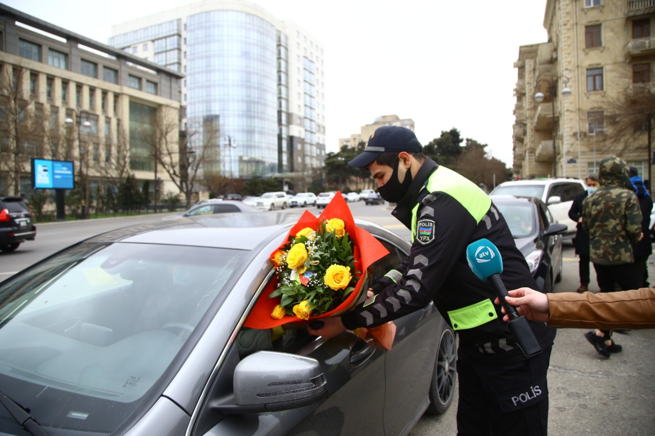 8 Mart Beynəlxalq Qadınlar günü münasibətilə Bakı şəhər Dövlət Yol Polisi İdarəsi ənənəvi aksiya keçirib.