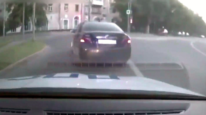 Yol polisi əməkdaşları “Saxla” tələbinə məhəl qoymayan və qaçmağa çalışan sürücünü silahla saxlayıblar. Avtosfer.az xəbər verir ki, hadisə Rusiyanın paytaxtı Moskvada baş verib.