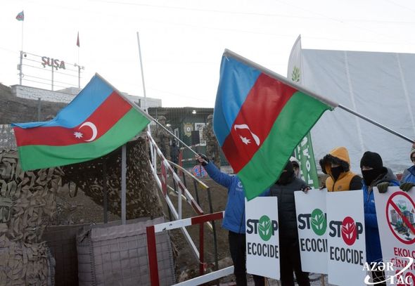 Акция протеста, организованная на участке дороги Ханкенди - Лачын, проходящем через Шушу, азербайджанскими экологами, молодежью и волонтерами, требующими прекращения незаконной эксплуатации месторождений полезных ископаемых на территории Азербайджана и разрешения на проведение мониторинга месторождений "Гызылбулаг" и "Демирли", продолжается уже 19 дней.