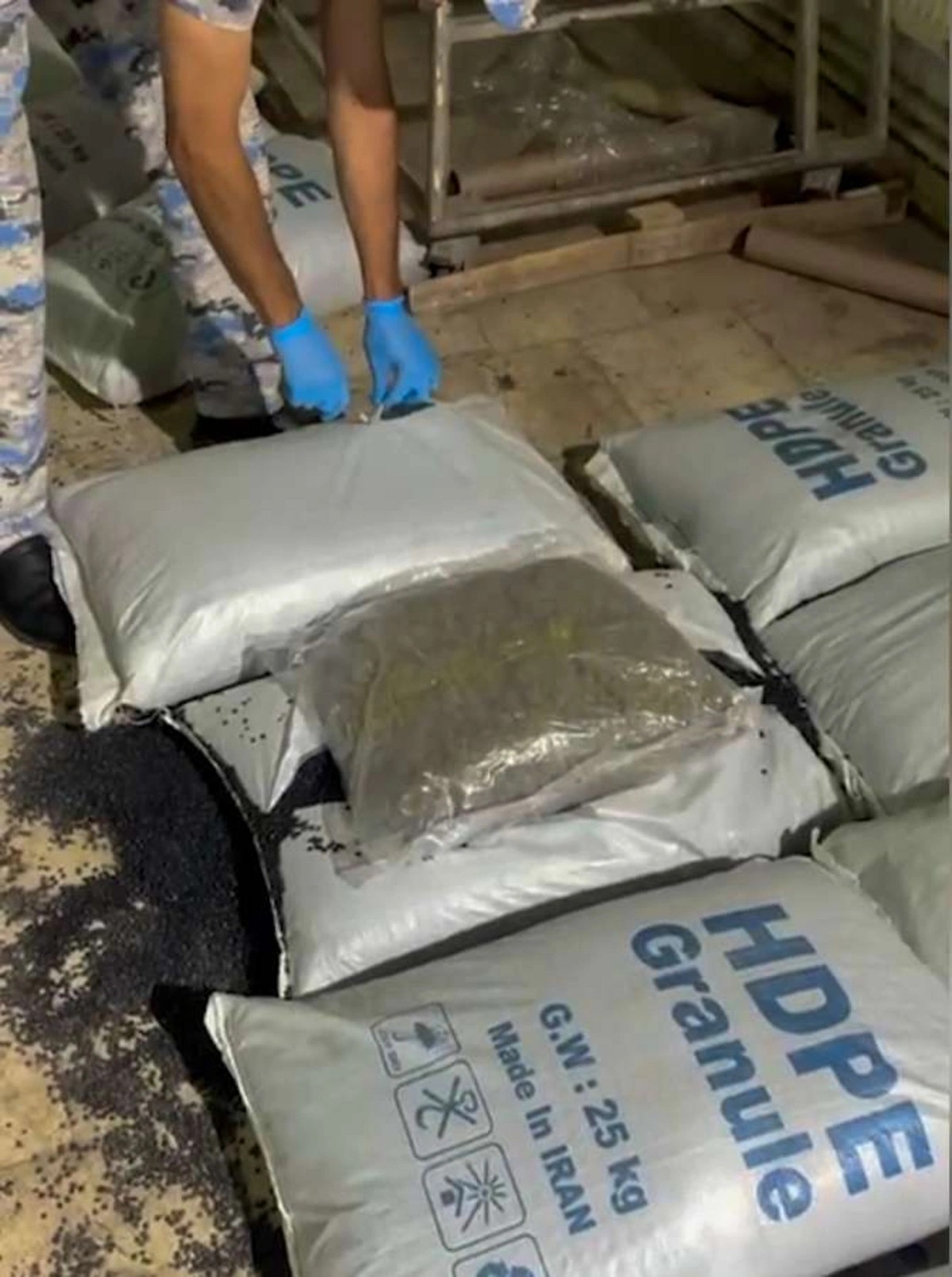 Так, в ходе проверки внутри 30 мешков груза было обнаружено особо крупное количество наркотического средства - марихуаны, общим весом 63 кг, спрятанное от таможенного контроля.