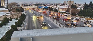 Из-за обледенения дороги затруднено движение транспорта на аэропортовском шоссе - ФОТО