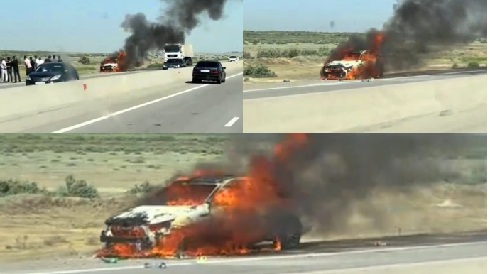 Направлявшийся в Баку автомобиль загорелся в пути - ВИДЕО